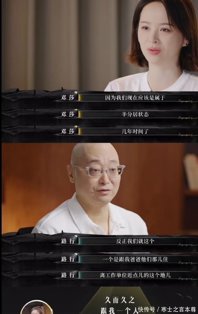 因为工作繁忙,邓莎讲道她与老公好长一段时间都不住在一起,对方会住在离公司较近的地方,邓莎则与儿子大麟子以及爸妈生活在一起。这种半分居的状态也导致孩子好长时间都见不到爸爸,对方也从不过问孩子的学习和生活。